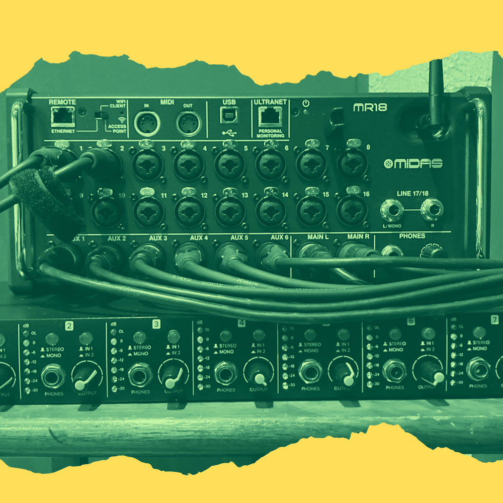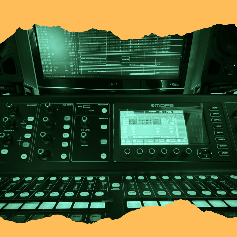 Residencia crítica. Ensayas en El Living, pero la señal viaja por AES50 directo a nuestra consola Midas M32 en el Control Room.